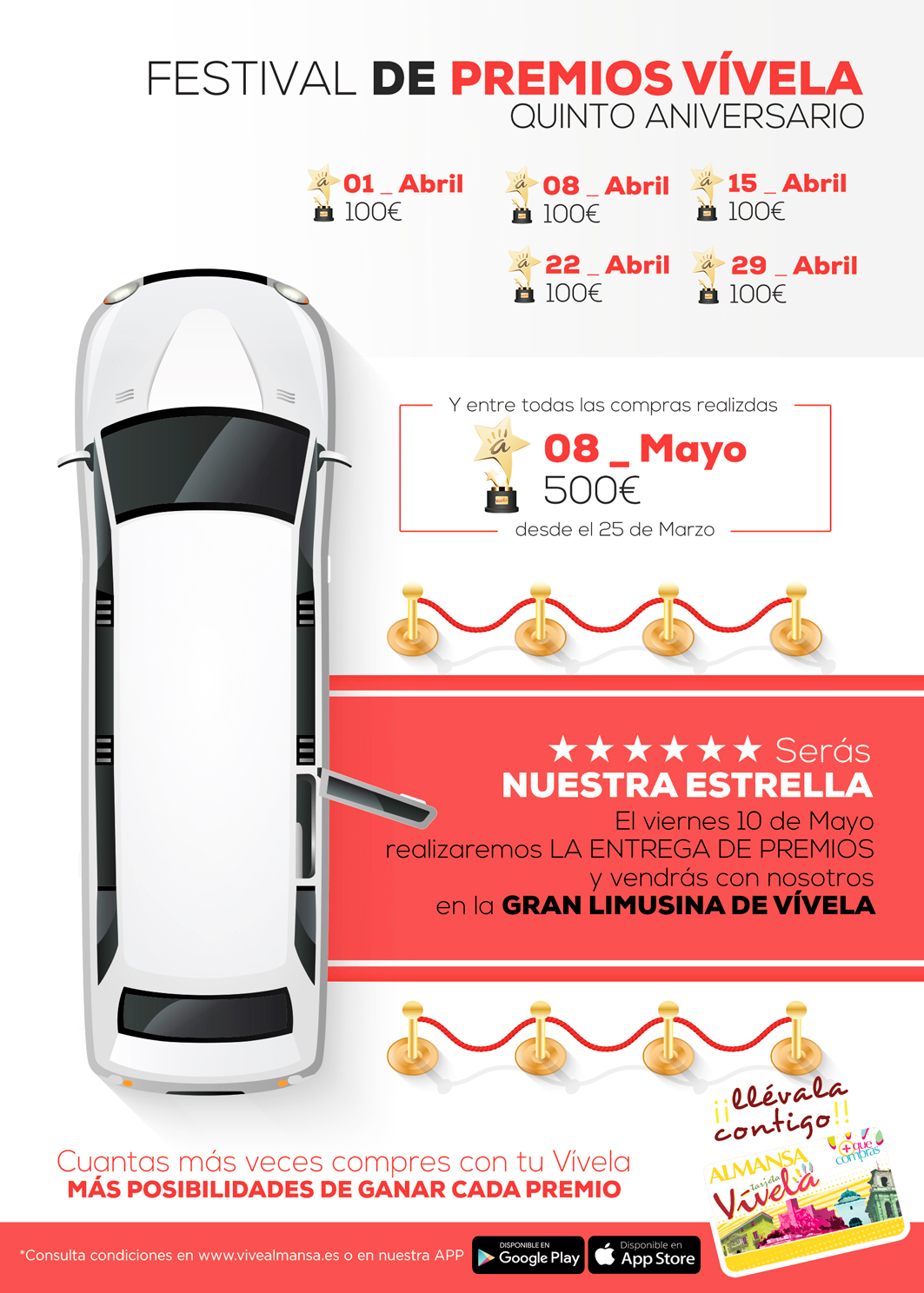 Y como siempre, CUANTAS MÁS VECES COMPRES con tu Tarjeta Vívela de Almansa, MÁS POSIBILIDADES TENDRÁS DE GANAR CADA PREMIO.